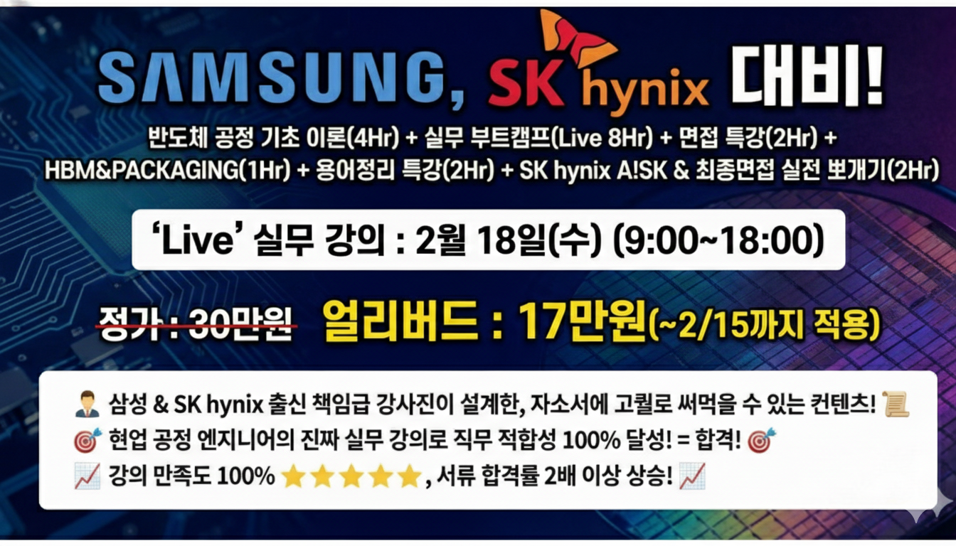 [왕초보 공정 기초 + 실무 부트캠프 + 면접 대비 특강 + HBM 특강 + 용어정리 특강 + SK hynix A!SK & 최종면접 실전 뽀개기] All in One Package로